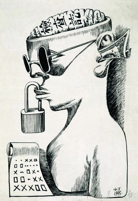 漫畫(huà)家丁聰為漫畫(huà)界前輩丁悚之子,1916年生,上海人,筆名小丁。丁聰中學(xué)畢業(yè)后,在上海美專(zhuān)學(xué)習(xí)了半年素描,就畫(huà)漫畫(huà)做起了編輯工作。抗日戰(zhàn)爭(zhēng)期間,他先后參加中華全國(guó)漫畫(huà)界抗敵協(xié)會(huì),編輯《抗日畫(huà)刊》,到香港成立抗日救亡漫畫(huà)會(huì),編輯《良友》、《大地》、《今日中國(guó)》等進(jìn)步刊物并組織抗戰(zhàn)宣傳展覽,后輾轉(zhuǎn)各地宣傳抗戰(zhàn)。抗戰(zhàn)勝利后回到上海并以漫畫(huà)為武器投身于爭(zhēng)取民主、反對(duì)內(nèi)戰(zhàn)的斗爭(zhēng)。