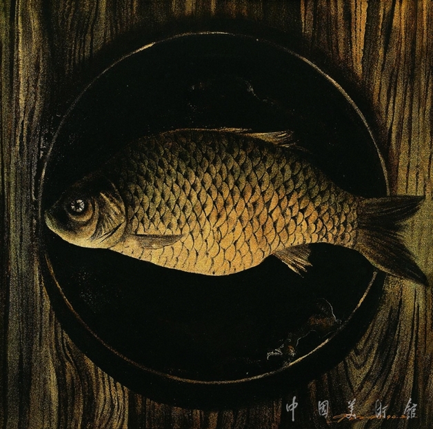 程向君善于運用具象的繪畫語言發(fā)揮漆畫的材質優(yōu)點,因為他有較深厚的油畫基礎,所以他的漆畫常帶有油畫趣味,《黑漆盤中的魚》就有古典油畫的味道。但是,他并不忽視對漆畫自身藝術語言的探索,他認為,“適宜漆的材料及表現(xiàn)技法稱之為易漆性,這種易漆性就是漆的藝術語言”。十多年來,他不斷地尋找這種語言,嘗試著超越繁縟的制作工序與復雜的材料,通過單純化的制作而求得漆畫的藝術性,此畫正是這一追求的結果。