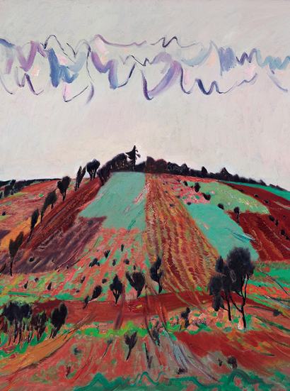 王克舉的油畫創(chuàng)作時刻關(guān)注著藝術(shù)與自然生命的密切關(guān)系?!兑褂瓿跚纭肥瞧湓?015年的油畫作品,突出呈現(xiàn)和詮釋了他以寫生為創(chuàng)作方式。王克舉作為表現(xiàn)性與意象性油畫的代表人物,在其畫面中,山巒、田地、樹木乃至天上的云朵都在抽象性的筆法表現(xiàn)下幻化出屬于王克舉的形態(tài)和色彩。對景造意、情景交融,王克舉通過寫意性油畫語言,表現(xiàn)出自然的山水風(fēng)景和蓬勃綠植,反映著自然生機(jī)的向度與生命的力度。作品不僅具有大膽的線條和鮮明的色彩,更承載著藝術(shù)家的情緒與情感,體現(xiàn)出藝術(shù)家在靈動結(jié)構(gòu)中探索藝術(shù)在秩序規(guī)律與桎梏之間的博弈。